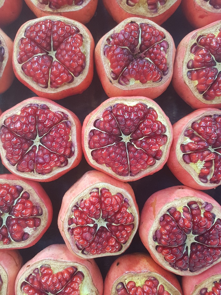 ומה לגבי תפוז ? או רימון ? הנה הוא , הרימון. יושב מולי בקערה על השולחן ואני איתו בדיאלוג. ואני חושבת- לקלף או לא לקלף ? יש לי או אין לי כח ? ואחכ לשטוף ידיים, וכל המיץ שישפריץ החוצה והכתמים. האם הטעם שווה את זה ? וצריך להחליף לילדים בגדים אחר כך .. זו כבר עבודה ממש. האם שווה להשקיע את כל המאמץ הזה ?